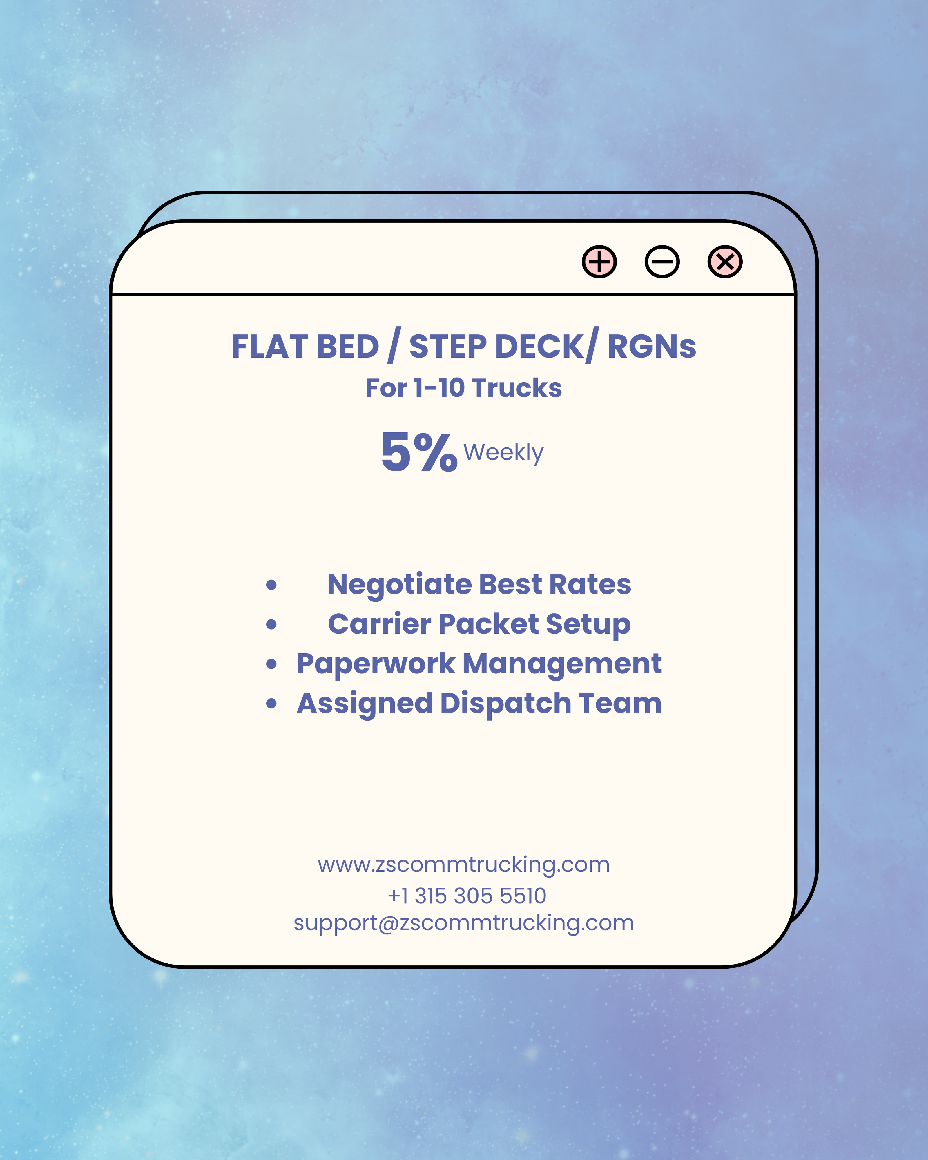 We specialize in dispatching for dry van, flatbed, reefer, step deck, and RGN trailers, catering to a wide range of transportation needs.